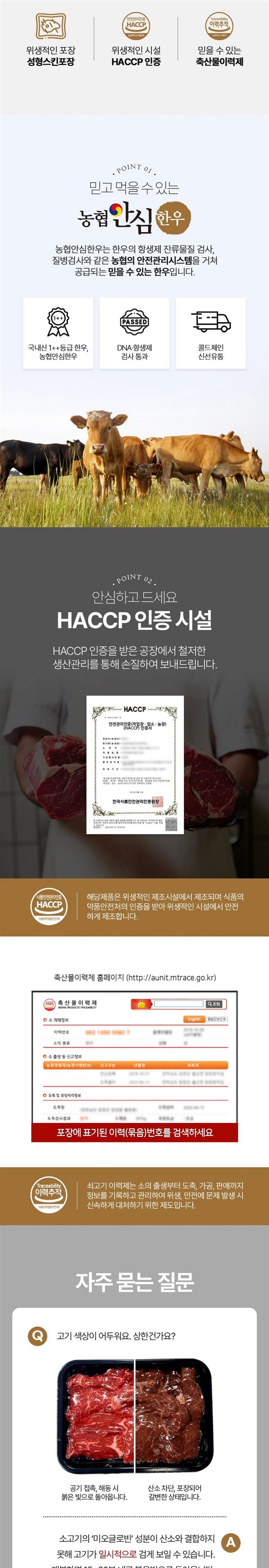 6-2. 축산물 - 「축산법」에 따른 등급 표시(1++ 등급 국내산 쇠고기의 경우 「소ㆍ돼지 식육의 표시방법 및 부위 구분기준」에 따라 근내지방도 정보를 포함하여 표시), 「가축 및 축산물 이력 관리에 관한 법률」에 따른 이력관리대상축산물 유무 상품 상세페이지 참조