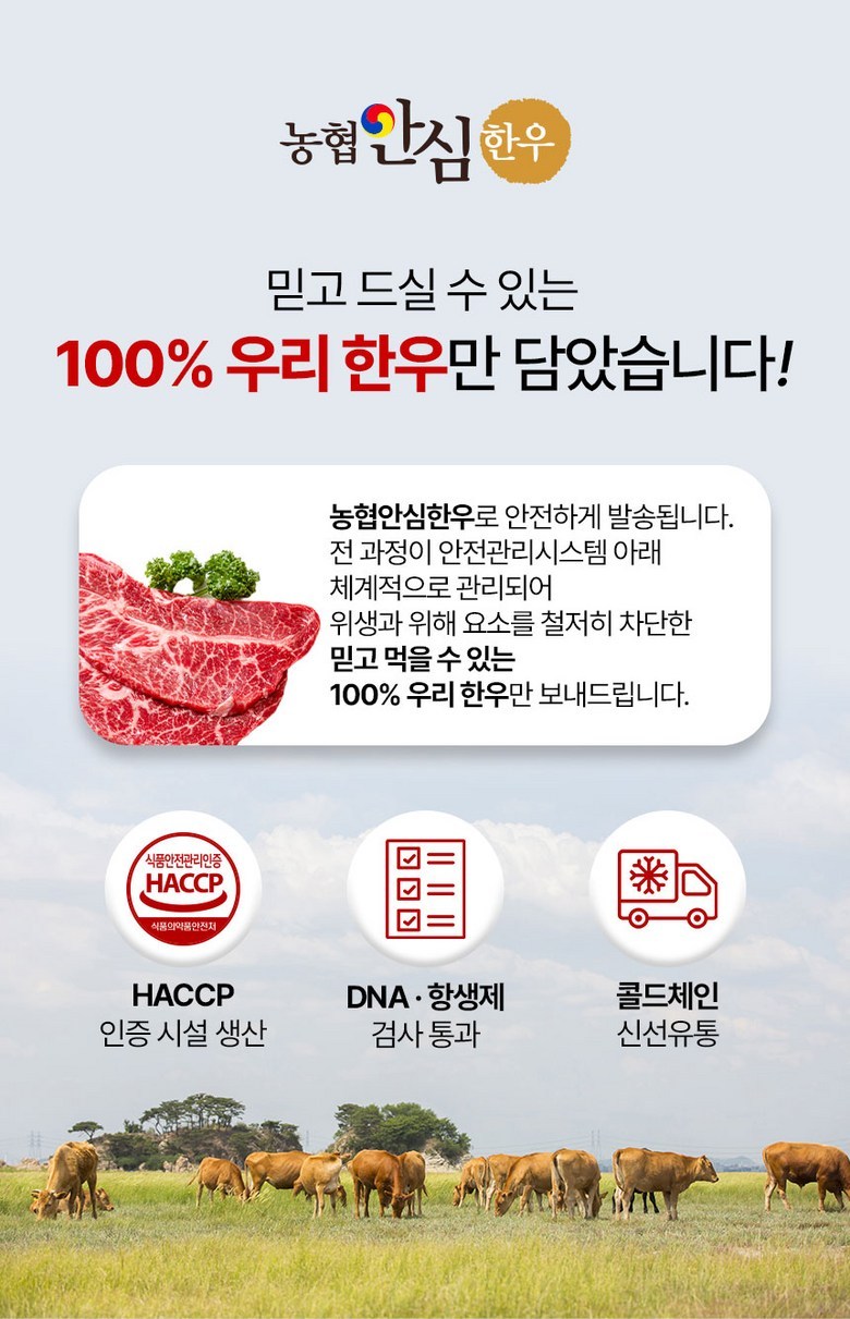 | 6-2. 축산물 - 「축산법」에 따른 등급 표시(1++ 등급 국내산 쇠고기의 경우 「소ㆍ돼지 식육의 표시방법 및 부위 구분기준」에 따라 근내지방도 정보를 포함하여 표시), 「가축 및 축산물 이력 관리에 관한 법률」에 따른 이력관리대상축산물 유무 | 상품 상세페이지 참조 |
